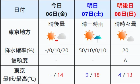 出典:(https://www.jma.go.jp/bosai/#area_type=class20s&area_code=1320300&pattern=forecast)
